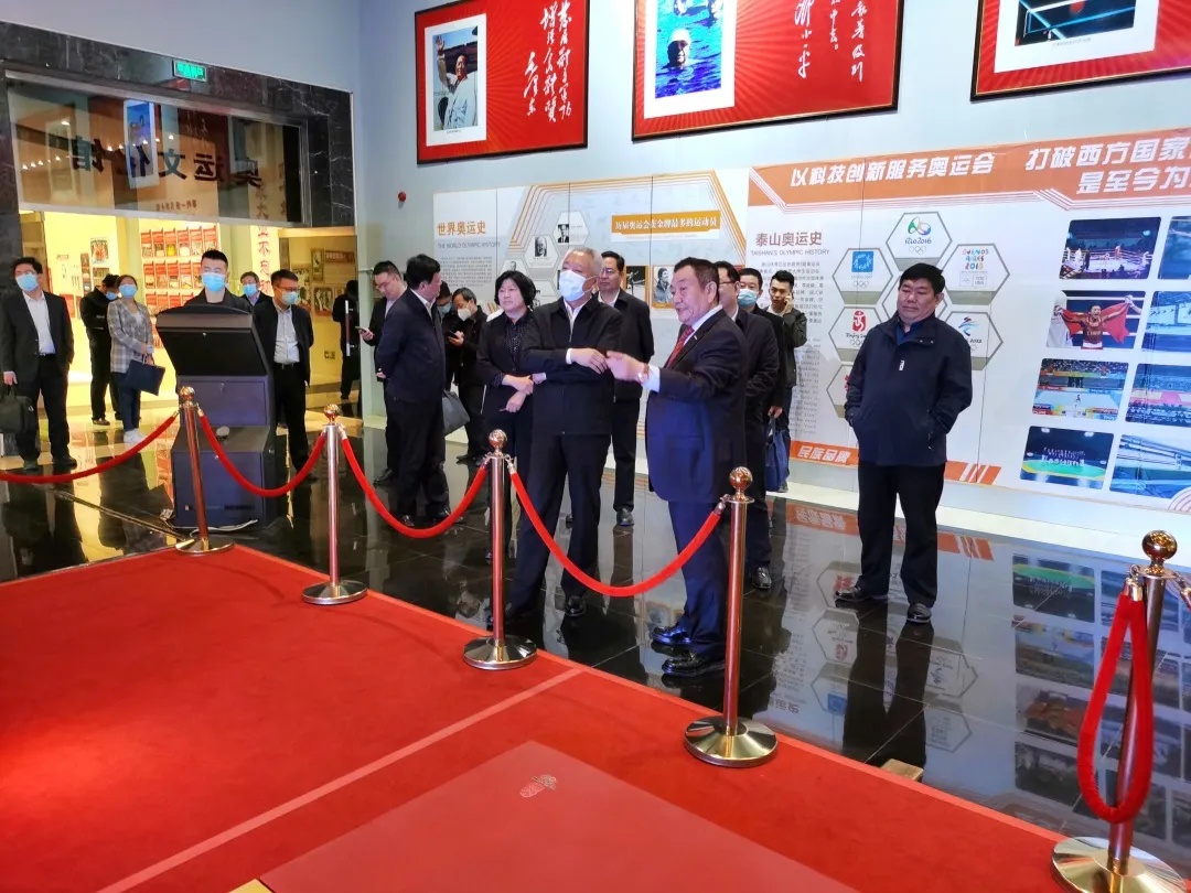 在泰山體育產業集團,副省長凌文深入泰山體育博物館、瑞豹自行車生產車間、冰雪運動館等處,現場了解企業科技研發、標準制定、產業規劃等,對于泰山集團40多年來立足科技創新,推動3億人參與冰雪運動,助力“健康中國”、參與“一帶一路”建設等方面做出的成績贊不絕口。