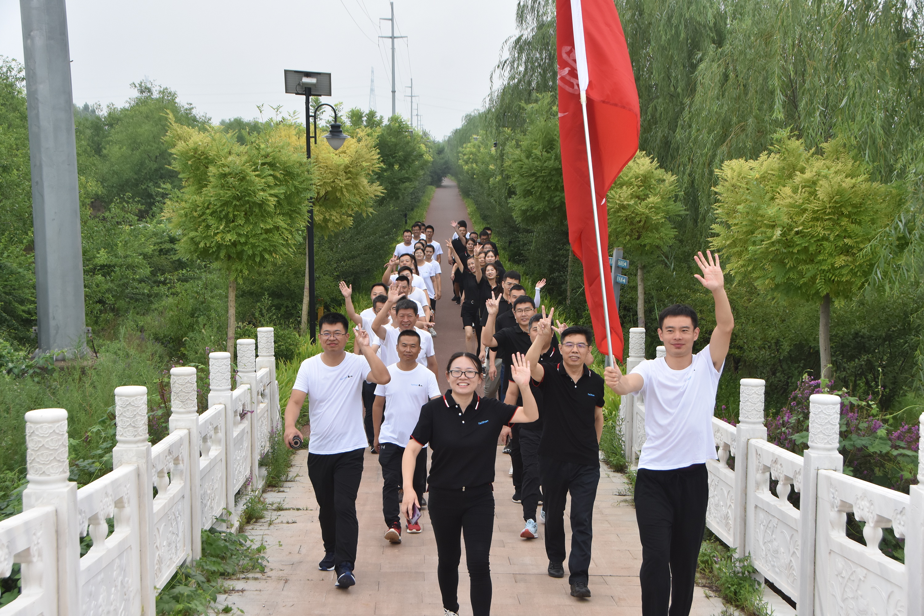 沒有全民健康,就沒有全面小康。習近平總書記指出:“全民健身是全體人民增強體魄、健康生活的基礎和保障,人民身體健康是全面建成小康社會的重要內涵,是每一個人成長和實現幸福生活的重要基礎?!北敬稳窠∩斫〔叫谢顒?,泰山體育42名優秀代表身著統一服裝,代表著泰山集團歷經42年由小到大,敢于拼搏,艱苦奮斗的發展歷程。肩扛“弘揚革命精神,助力全民健身”大旗,在5公里徒步過程中,不僅用良好的精神面貌展現泰山人堅強樂觀、不畏艱難的精神,同時體現科學健身在提高身體素質、增強抗疫信心的作用,向社會傳遞積極向上的生活態度和樂觀精神。