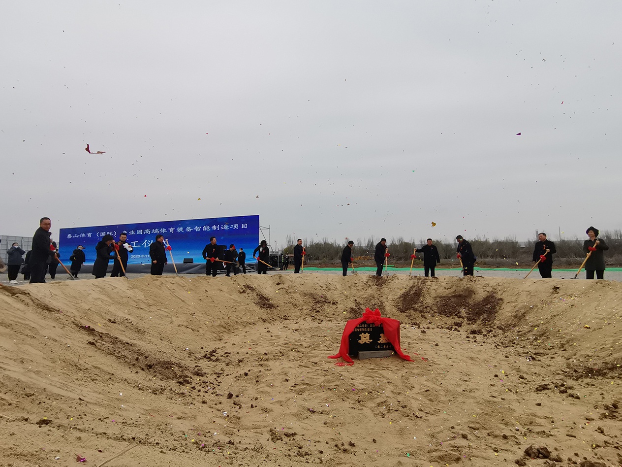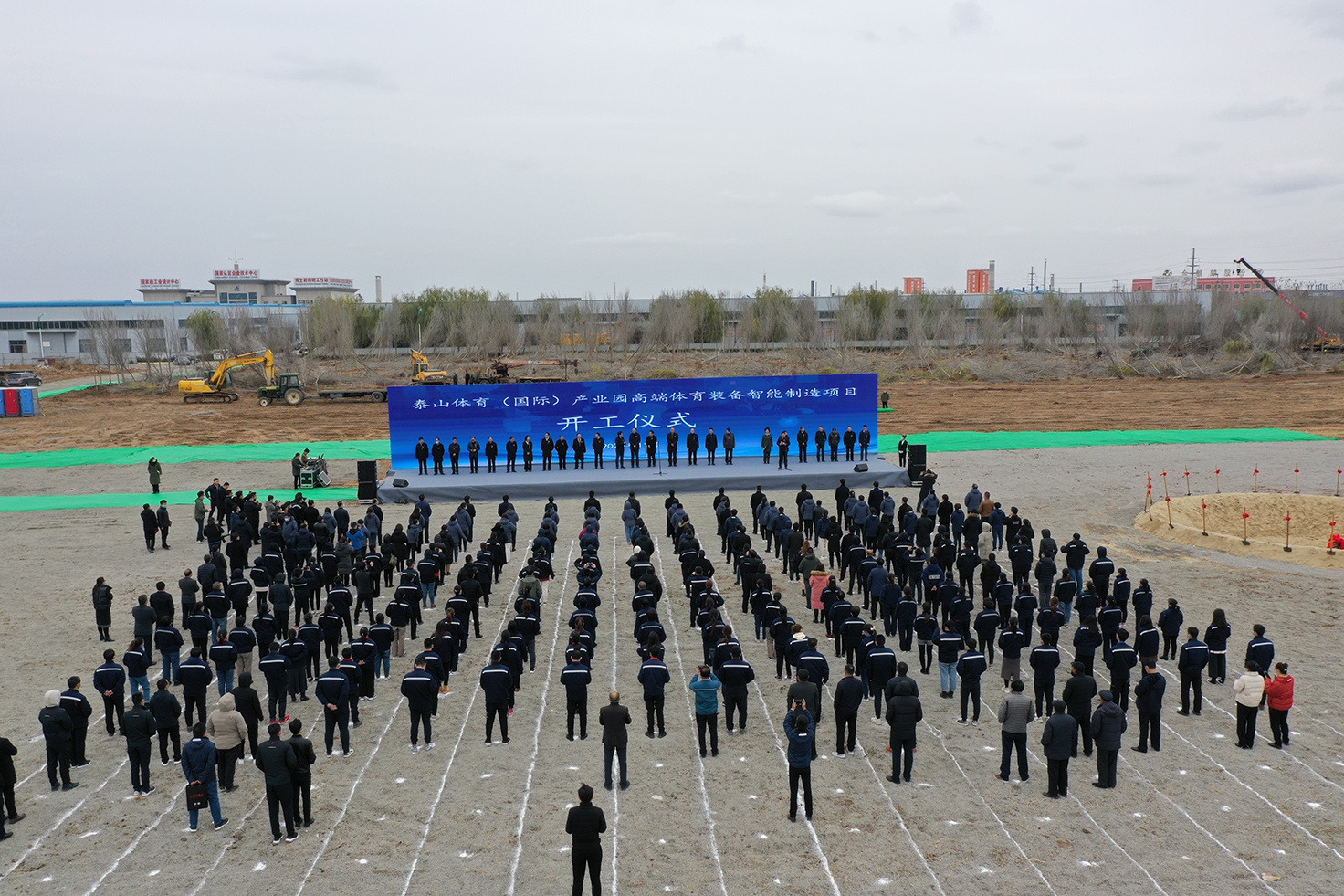 為堅定不移走制造強國、質量強國、網絡強國、數字中國路線,推進體育產業基礎高級化、產業鏈現代化,提高品牌核心競爭力,響應“健康中國”“體育強國”國家戰略號召,積極落實山東省委省政府做大做強民族體育品牌的指示,為發展體育產業聚勢賦能,11月26日,泰山體育(國際)產業園高端體育裝備智能制造項目開工儀式在泰山集團舉行。中國體育用品業聯合會主席李樺、山東省體育局副局長王延奎、山東省工信廳二級巡視員李向東、中國農業銀行山東省分行副巡視員宋紅光、山東大學體育學院黨委常務副書記郭學慶、德州市政協主席翟長生、德州市政協秘書長魏增新、中國農業銀行德州分行行長田樹江,德州市及樂陵市有關部門主要負責同志出席儀式。樂陵市委書記樊廷雷主持開工儀式并發表致辭。