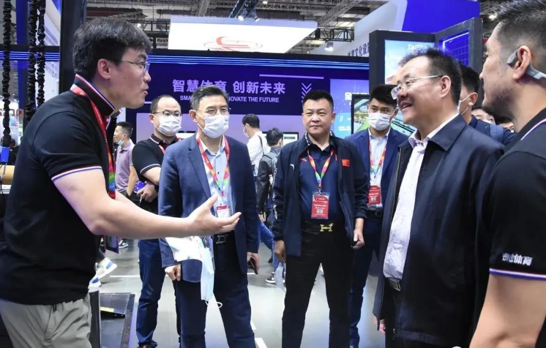 展期內(nèi),領(lǐng)導(dǎo)、嘉賓蒞臨參觀泰山體育展廳,體驗(yàn)產(chǎn)品、指導(dǎo)工作,對展廳內(nèi)的高端裝備和智慧健身生態(tài)產(chǎn)品表示肯定。