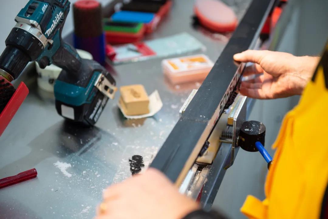 山東省體育產(chǎn)業(yè)集團(tuán)董事長卞志良向記者介紹中國第一臺冬奧會雪蠟車