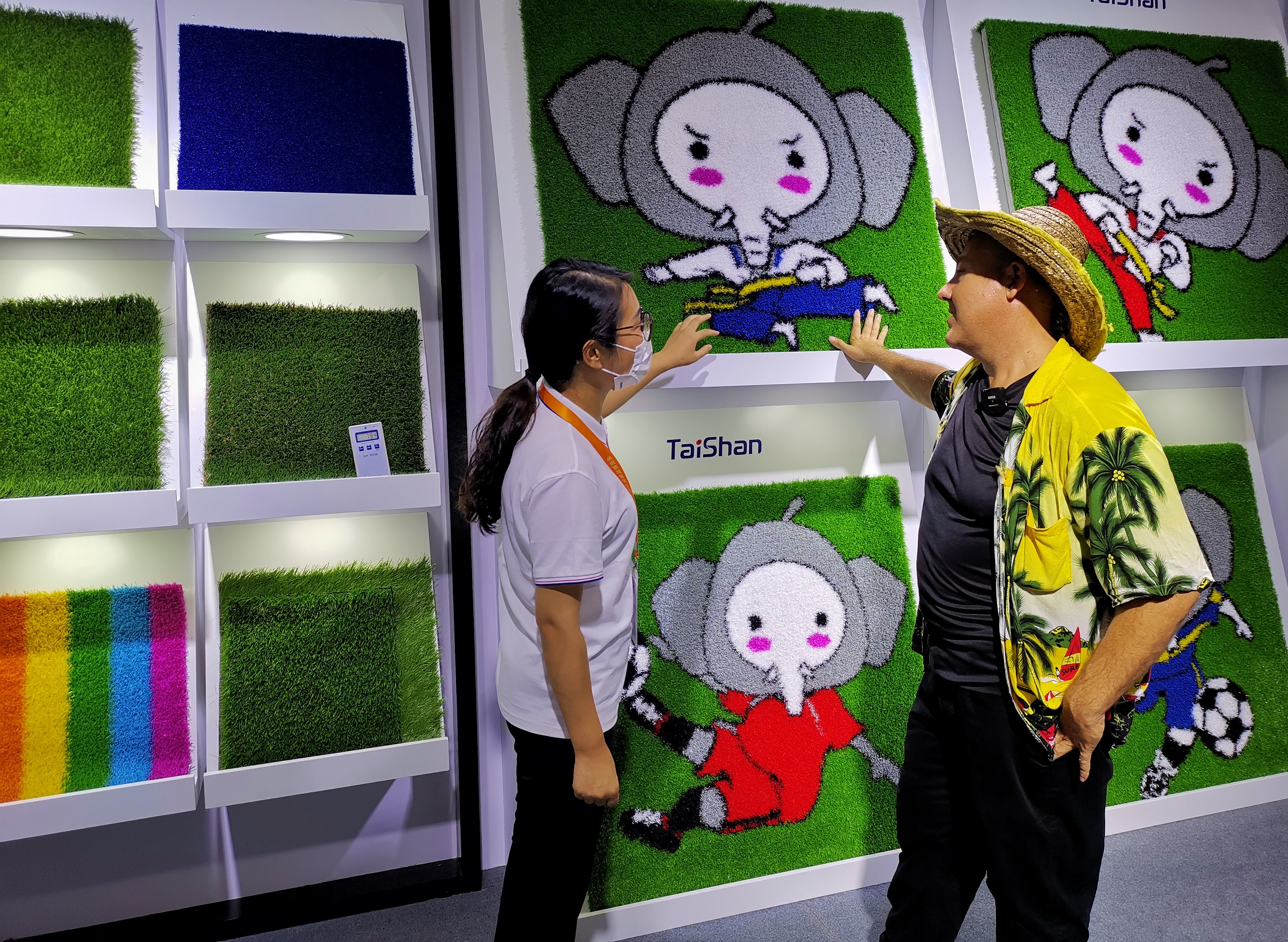 此外,泰山體育自主研發的“會呼吸的人造草”也將給觀眾帶來別樣體驗,它經運動摩擦會釋放負離子,含量達到森林、湖泊標準。泰山負離子草坪獲得了中國國際地面鋪裝材料展覽會的年度十大新品獎,技術達到了世界領先水平。展會將展出高端拼裝草、高端寵物草、高端休閑草、高端幼兒園彩虹草及高端定制運動草等。