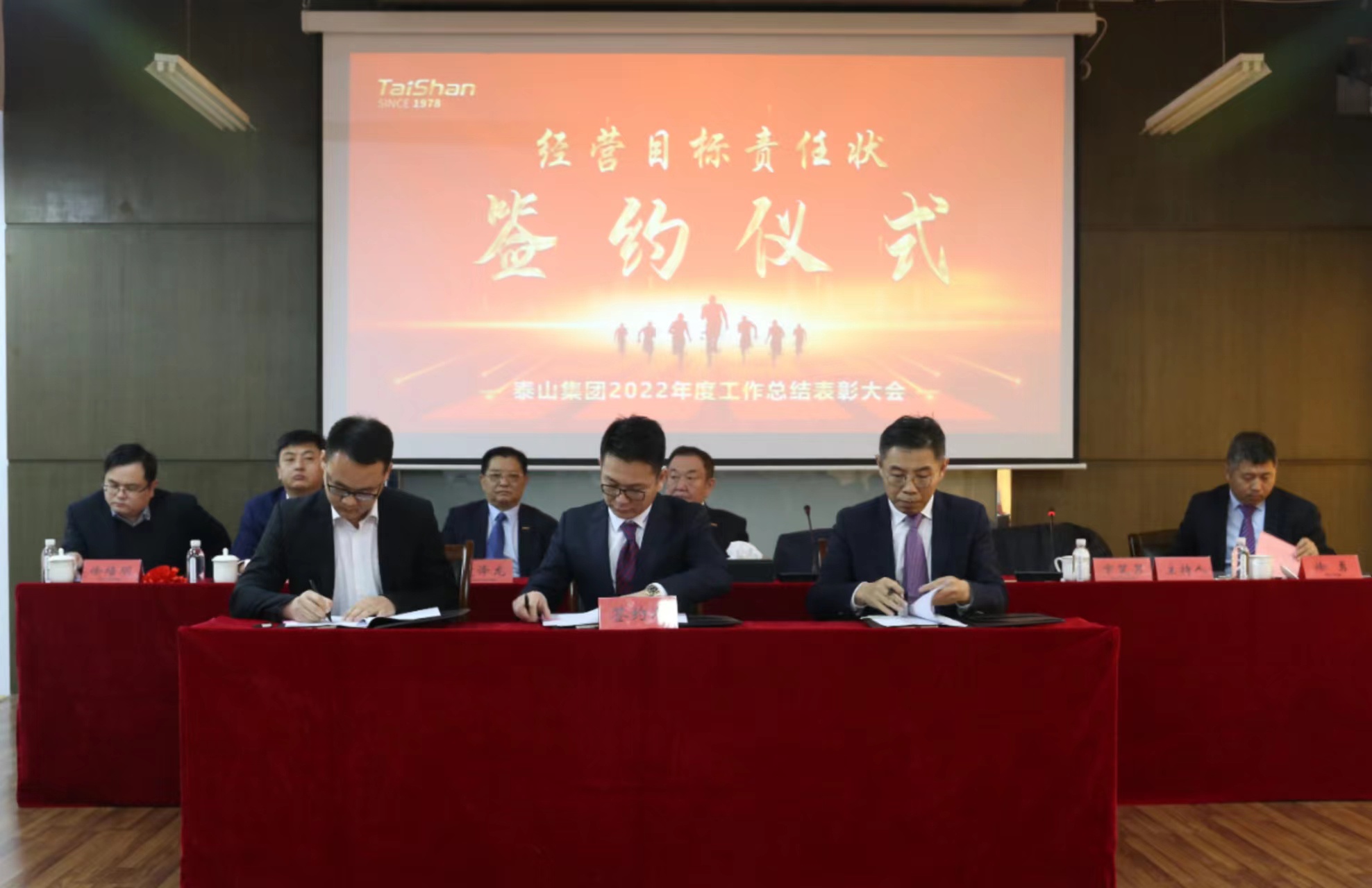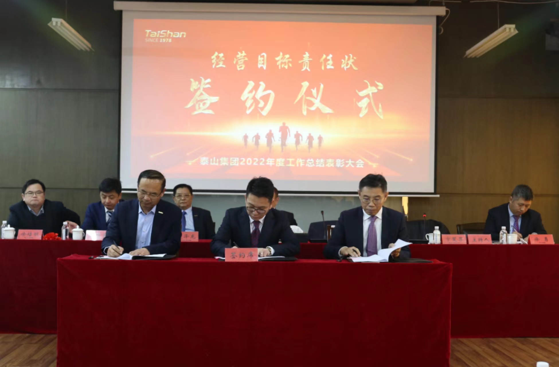 2023年1月28日上午,泰山集團2022年度總結表彰大會在樂陵舉行。本次大會全面總結2022年度集團各項工作和發展成果,對一年來在公司生產經營管理各項工作中做出突出貢獻的先進集體和先進個人進行表彰獎勵,部署2023年工作任務和目標。全國政協委員、泰山集團董事會主席卞志良,董事長卞青峰以及集團中高層、部分員工代表參加了會議。大會由集團總裁卞笑男主持。