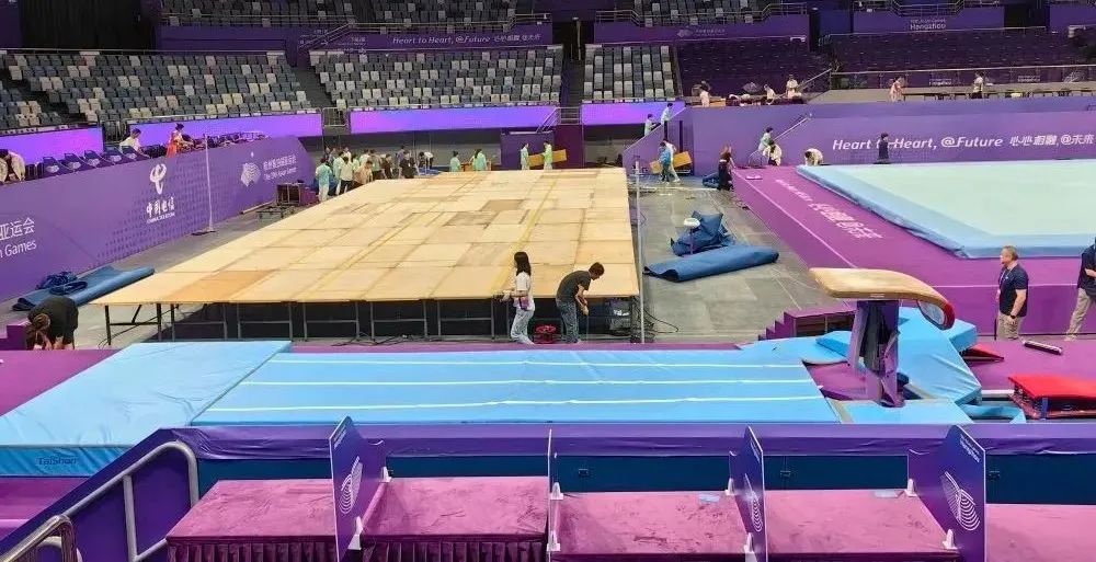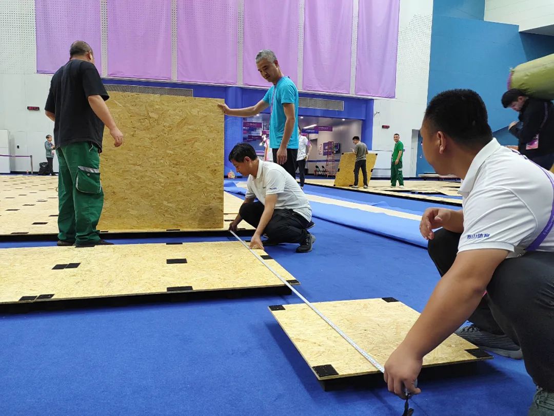 泰山體育作為亞運會官方供應商和服務商,為田徑、體操、舉重、自行車等12大項、17個分項提供器材與服務,派出近百人的專業服務保障團隊,全過程、全賽時負責賽事場地布置、轉場、器材安裝、調試、技術檢查等比賽服務,成為亞運會名副其實的“守衛鐵軍”。
