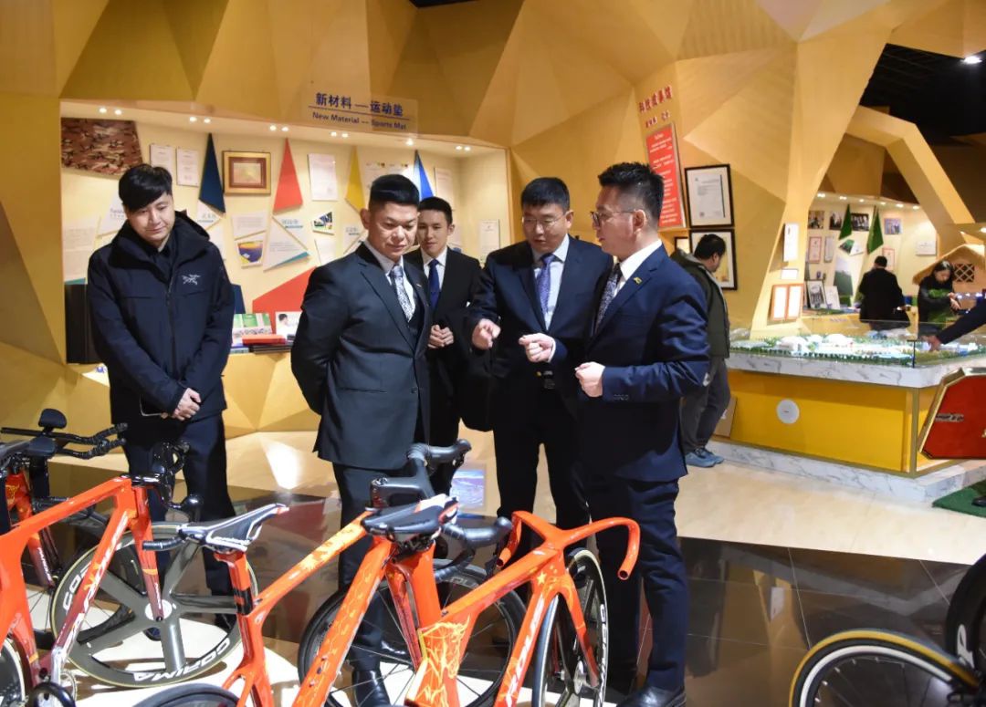 在泰山體育董事長卞青峰的全程陪同下,奧克托哈里一行先后參觀了解了泰山體育在新材料體育器材、碳纖維自行車、人造草坪、體育芯片、數字化智能化工廠等前沿技術領域的最新成果,奧克托哈里主席對泰山體育的產品和技術給予了高度評價,并特別贊賞了泰山瑞豹自行車的科技創新成果。