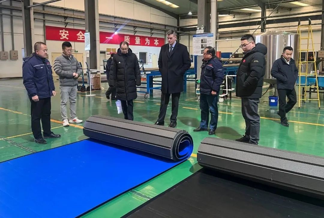 卡洛斯·艾力克主席深入泰山體育的產(chǎn)品中心與生產(chǎn)線,見證了智能化制造的全流程。在參觀中高度評價泰山體育的創(chuàng)新能力和產(chǎn)品質(zhì)量:“泰山體育不僅是器材供應(yīng)商,更是國際柔道標準制定的重要參與者。”