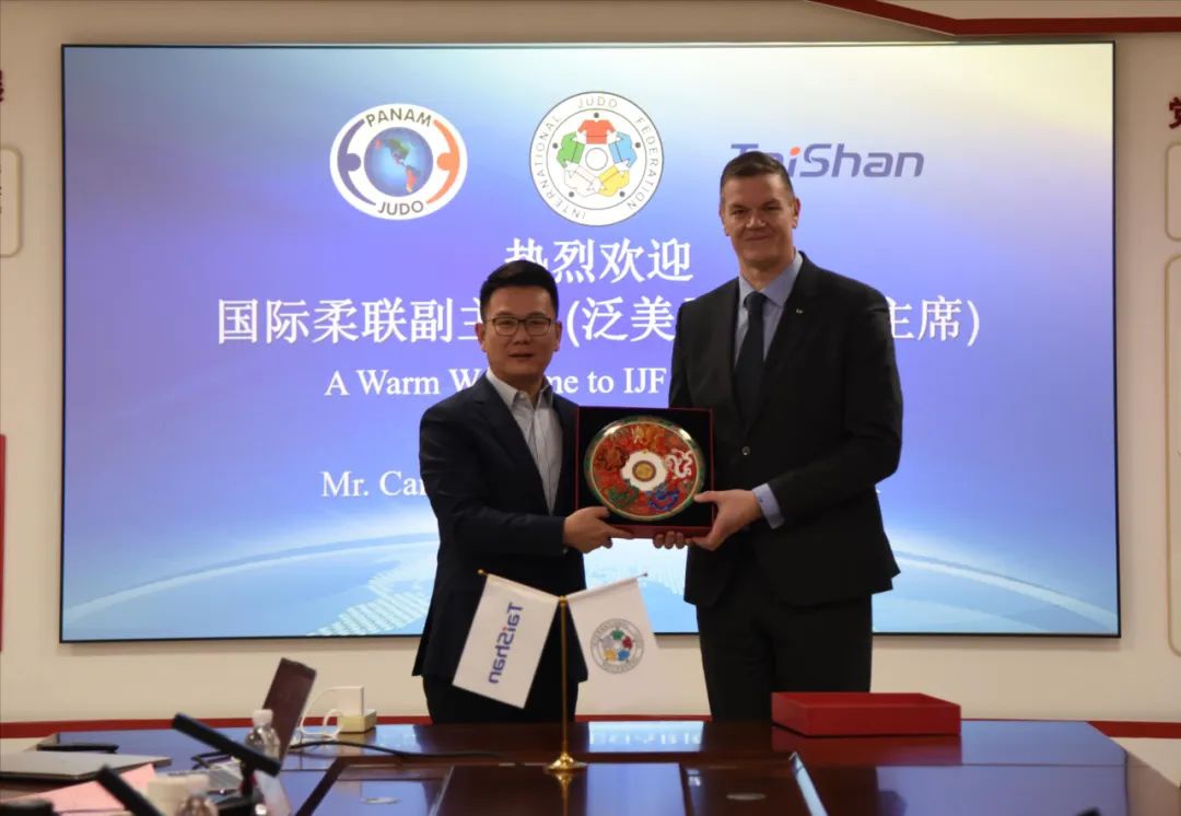2月7日,國際柔道聯(lián)合會副主席、泛美柔道協(xié)會主席卡洛斯·艾力克蒞臨泰山體育產(chǎn)業(yè)集團參觀交流,集團董事長卞青峰陪同。此次訪問不僅是對泰山體育長期服務(wù)國際柔道領(lǐng)域的肯定,更是雙方深化合作、共謀未來發(fā)展的重要里程碑。