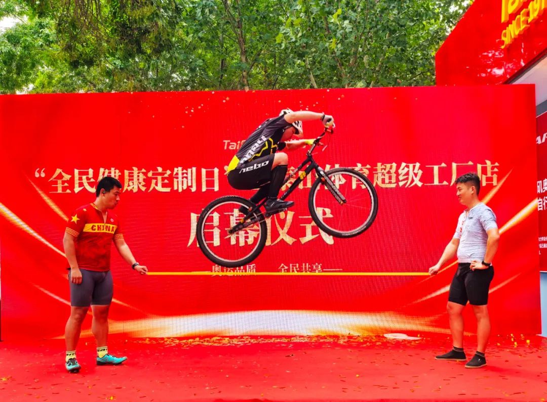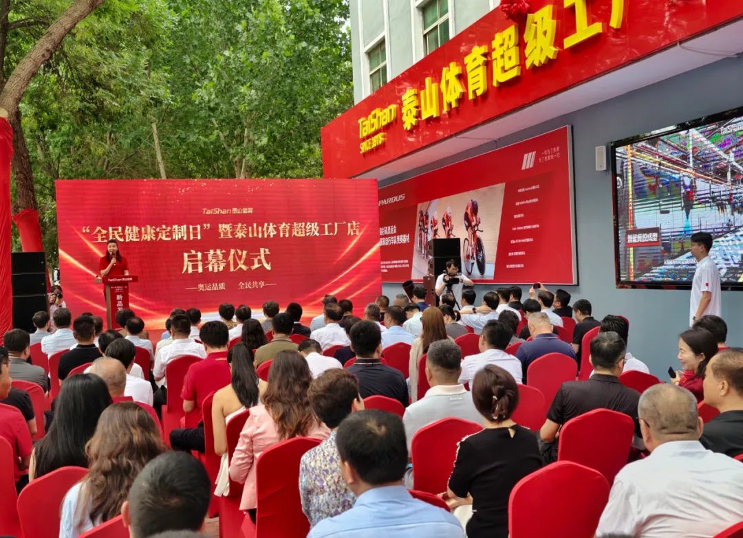 8月8日——在第17個(gè)“全民健身日”到來(lái)之際,泰山體育“全民健康定制日”活動(dòng)暨超級(jí)工廠店啟幕儀式在?山東樂(lè)陵市隆重舉行。本次活動(dòng)以“奧運(yùn)品質(zhì) 全民共享”為主題,?標(biāo)志著奧運(yùn)級(jí)體育科技與服務(wù)正式從頂級(jí)賽場(chǎng)走入尋常百姓生活,開(kāi)啟了全民健康個(gè)性化定制服務(wù)新紀(jì)元?。